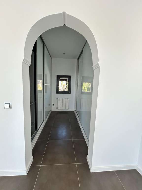 Al entrar por una puerta de madera, lo recibe un pasillo con piso de mármol y armarios de almacenamiento adornados del piso al techo. El dormitorio principal que se encuentra delante es espacioso y luminoso y cuenta con un vestidor y unas impresionantes vistas al mar desde grandes ventanales panorámicos en arco y un balcón de Julieta. Al lado se encuentra el baño familiar con ducha a ras de suelo con azulejos de piedra, lavabo, WC, toallero eléctrico y lavadora.