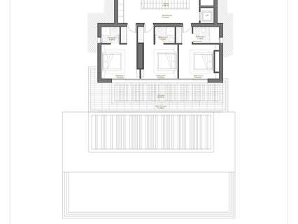 Bajando más, encontramos otra plataforma con el resto de estancias de la casa. Un total de tres amplios dormitorios con baño en suite y terraza ocupan este espacio.
