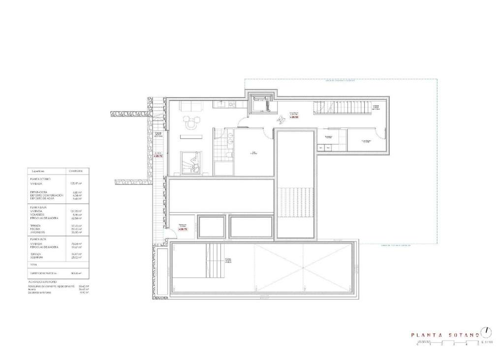 Con una superficie total construida de 716 m² distribuidos en tres niveles (sótano, planta baja y primera planta), la villa ofrece un equilibrio perfecto entre funcionalidad, diseño y comodidad.