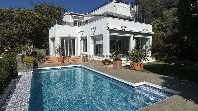 La villa también está excelentemente equipada con calefacción central mediante bomba de calor, instalación solar para agua caliente con depósito de 300 litros, conexión a Internet y sistema de alarma.