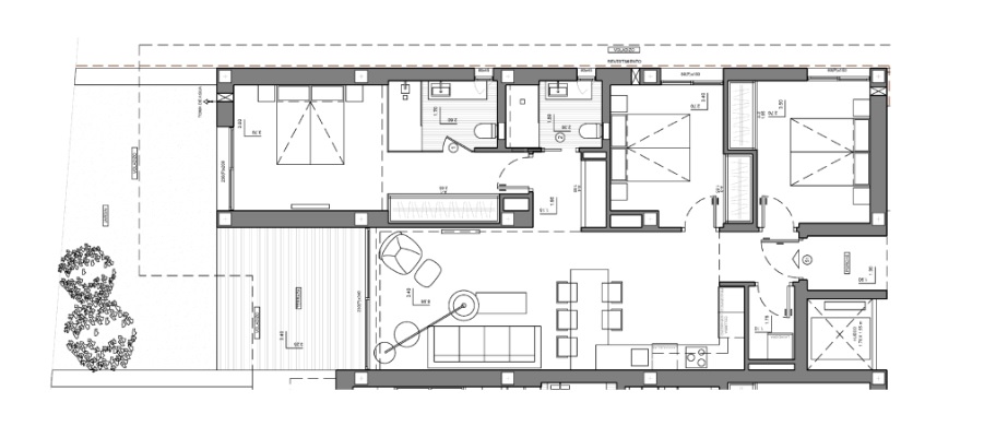 El piso se distribuye en: porche de entrada, hall de entrada, cocina americana totalmente equipada, lavadero, salón-comedor con salida al porche, terraza y jardín, 3 dormitorios dobles con armarios empotrados, uno de ellos con baño en suite y 1 baño familiar. Ventanas de aluminio con doble acristalamiento.Calefacción por suelo radiante eléctrico - Aire acondicionado (frío-calor). Este sistema híbrido de alta eficiencia energética permite combinar la calefacción, la producción de agua caliente sanitaria y el aire acondicionado. Sistema de ventilación mecánica controlada. Alarma. Aparcamiento.