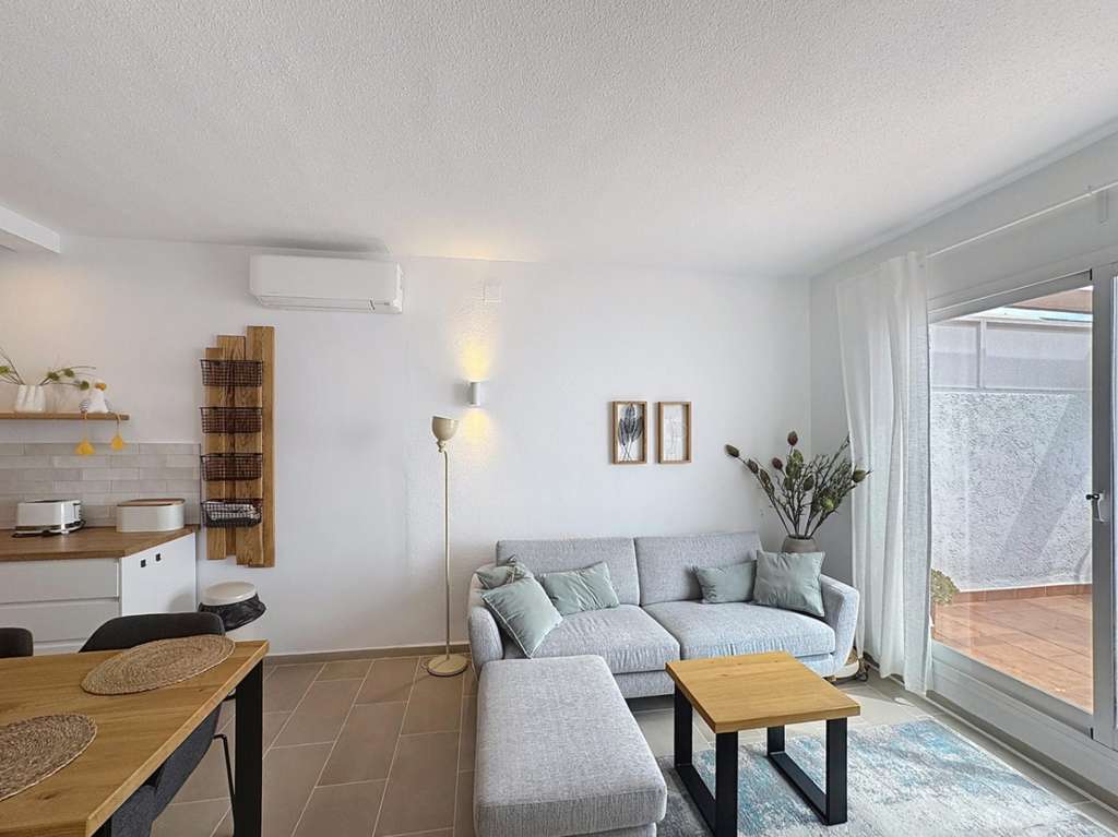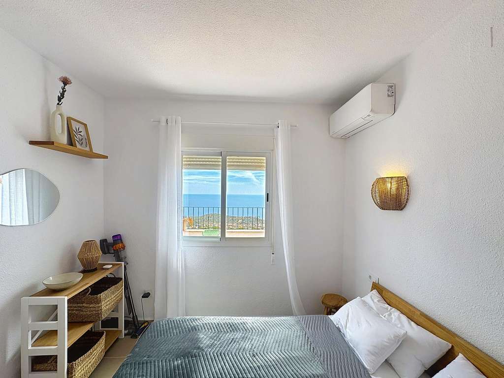 Dos dormitorios dobles con armarios empotrados.Amplio cuarto de baño.Salón comedor con cocina de concepto abierto, perfectamente integrado con la zona de terraza.Tres armarios tipo trastero en la entrada, aportando gran capacidad de almacenamiento.Terraza privada con vistas panorámicas, el lugar ideal para relajarse y contemplar el mar.Aire acondicionado frío-calor en todas las estancias, garantizando confort durante todo el año.Una vivienda lista para entrar a vivir, perfecta tanto como residencia habitual, segunda vivienda de vacaciones o inversión.