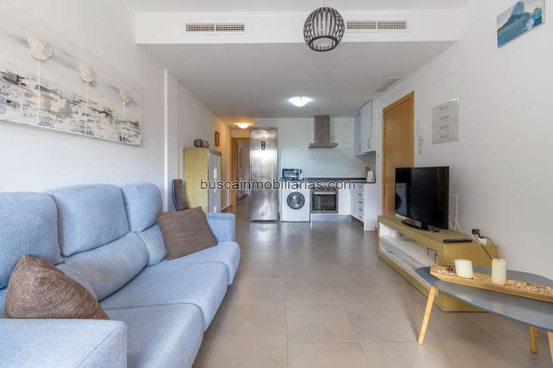 Se vende piso urbano en Benitachell con piscina comunitaria.Se vende un apartamento en planta baja en el centro del pueblo de Benitachell, con todos los servicios a poca distancia. El apartamento está ubicado en un edificio con elevación y azotea con piscina comunitaria. Cuenta con una superficie construida de 70 m2, con 55 m2 de superficie útil, dos dormitorios, un baño, un pequeño patio terraza y un salón diáfano con una moderna cocina. El apartamento se vende con plaza de aparcamiento en el garaje subterráneo del edificio.
