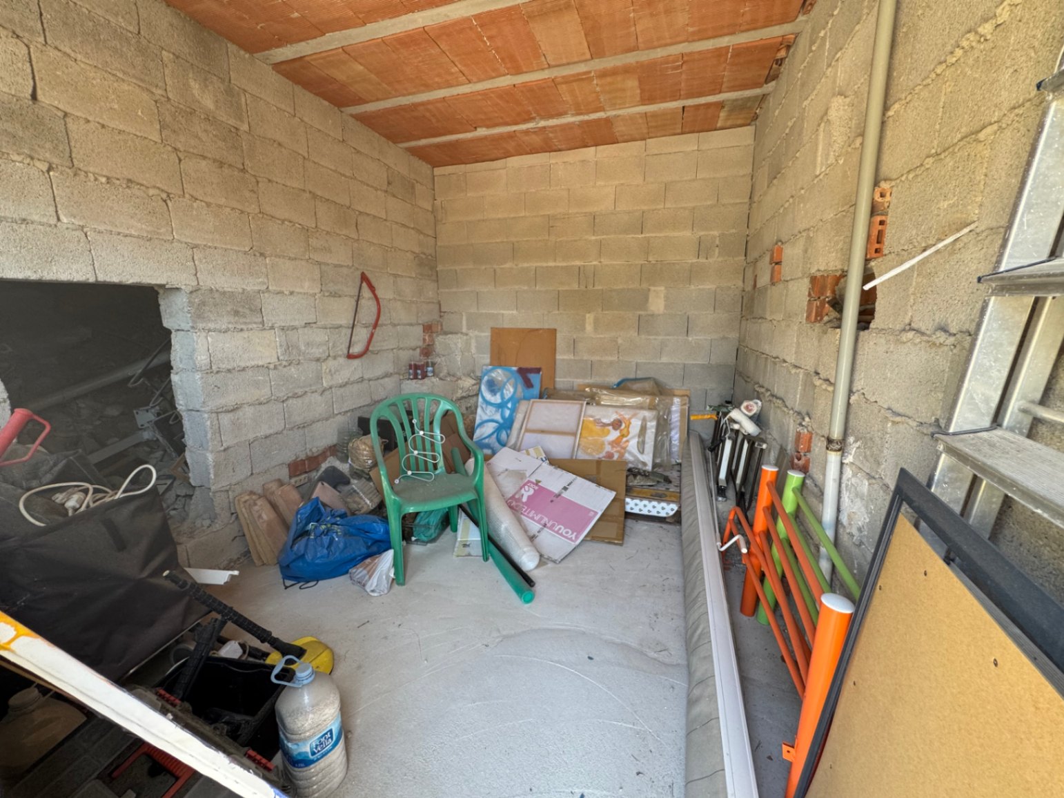 La planta inferior consta de: cocina-salón-comedor, 2 dormitorios, uno doble y el otro simple, con armarios empotrados, 1 aseo con ducha familiar y lavadero. Algunas ventanas de aluminio con cristal doble. Aire acondicionado (frío-calor) en toda la casa. Placa solar para agua caliente sanitaria.