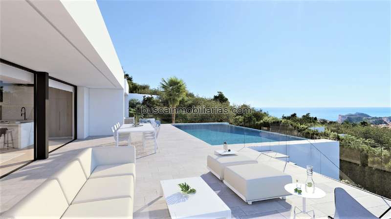Villa de lujo de architectura moderna con orientacion sur y vistas panoramicas al mar. Ideada para el disfrute y el ocio, todos los extras de este moderna villa los puedes encontrar en esta parcela de más de 1.300 metros cuadrados. Una villa con 3 habitaciones y 5 baños, y parking para 4 coches: 2 en porche cubierto y 2 en garaje cerrado.