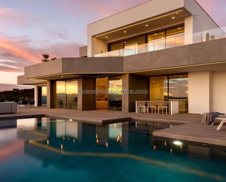Villa de nueva construcción y diseño moderno con impresionantes vistas al mar y orientación suroeste para disfrutar de increíbles puestas de sol.