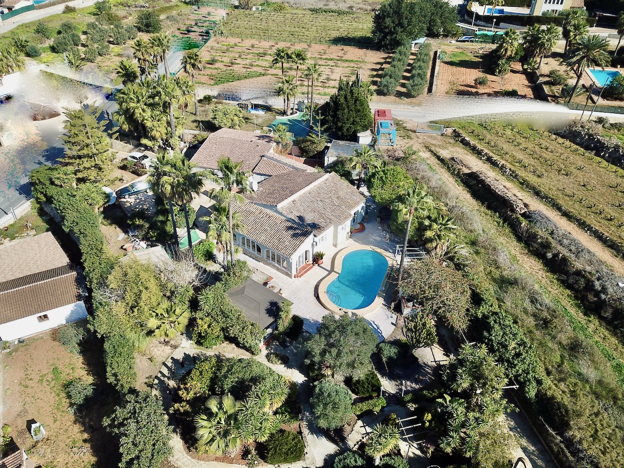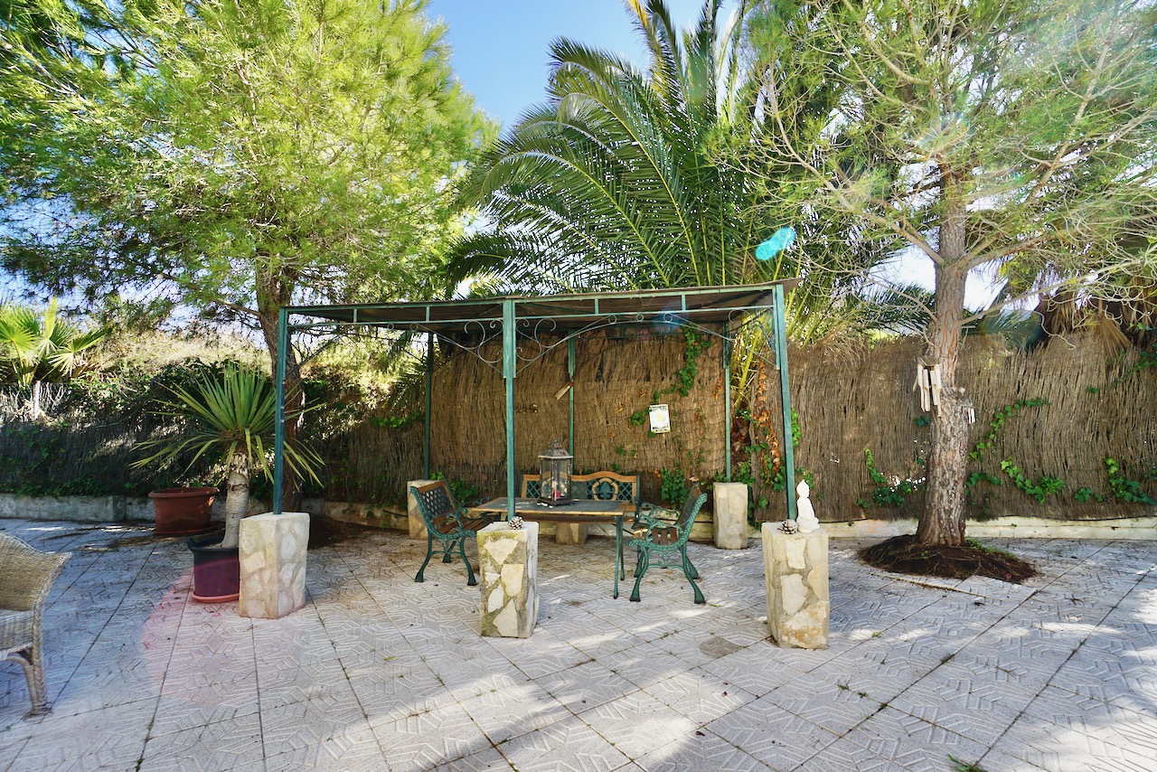Esta villa tiene un jardín grande y muy singular con senderos a través de las hermosas plantas mediterráneas y árboles frutales para explorar. También hay un montón de espacio que usted podría utilizar para cultivar sus propias verduras y varios cobertizos de almacenamiento alrededor de la frontera. Otra sorpresa es la gran parcela de tierra y el garaje doble que se encuentra junto a la villa en el lado izquierdo. Esta parcela de esquina está actualmente sin utilizar y tiene acceso independiente desde una pequeña carretera adyacente.