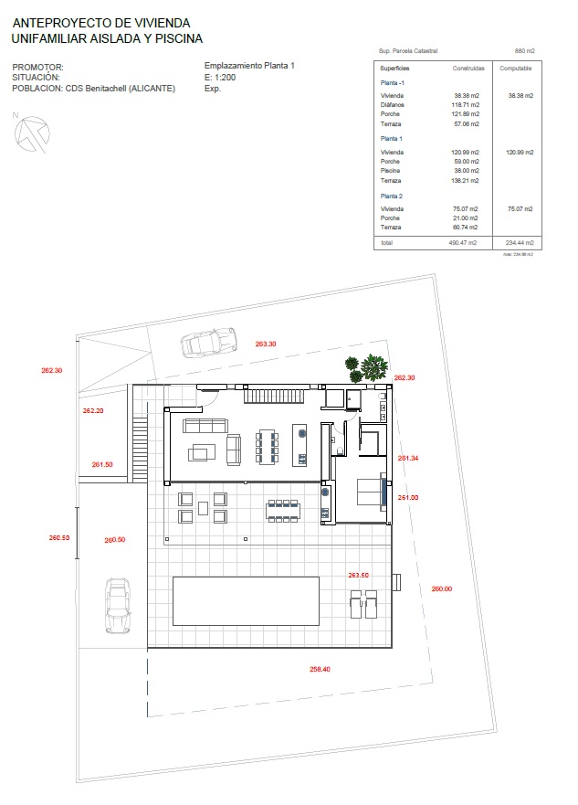 La casa tiene 451 m2 de vivienda, porches y garaje (ampliable en sótano) y 160m2 de terrazas.