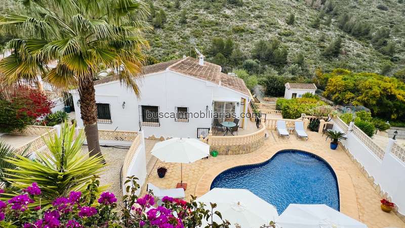 Esta encantadora villa española en venta en el Valle del Portet, Benitachell, a las afueras de Moraira, es perfecta para quienes buscan una cómoda casa familiar o un refugio vacacional. La casa principal cuenta con tres dormitorios, mientras que un cuarto dormitorio de invitados con entrada privada se encuentra en la planta baja, ideal para visitas o familias numerosas. La piscina privada está rodeada de amplias terrazas y atractivas zonas ajardinadas de fácil mantenimiento, que ofrecen sol todo el día y rincones con sombra para relajarse o entretenerse. Hay zonas seguras para que los niños pequeños jueguen, lo que la convierte en una opción ideal para familias. A solo 2 minutos en coche, encontrará un gran supermercado y tiendas locales, mientras que el centro de Moraira y sus hermosas playas están a menos de 8 minutos en coche. Bien cuidada por sus actuales propietarios como escapada vacacional durante todo el año, la villa es igualmente ideal como vivienda permanente.