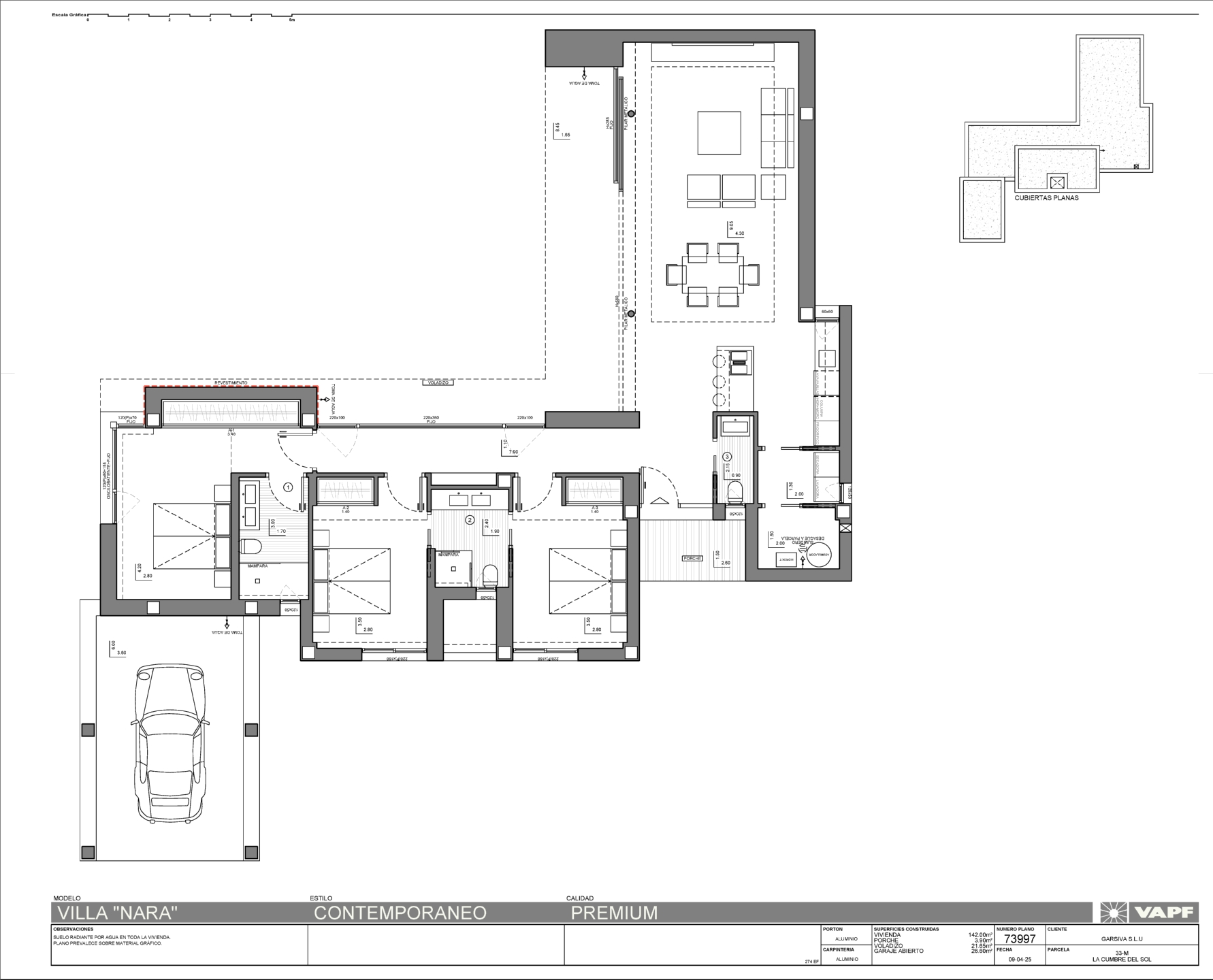 Villa Nara estará equipada con sistemas de alta eficiencia como aerotermia, ventilación con recuperación de calor, suelo radiante, alarma, etc. Cada detalle ha sido pensado para maximizar el confort y la sostenibilidad, desde los materiales hasta la orientación y el aprovechamiento solar.