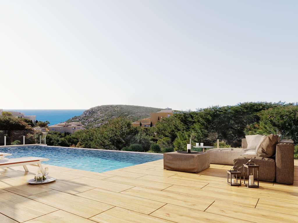 El diseño interior ha sido pensado para potenciar la conexión entre las estancias y el entorno. El salón-comedor se abre a través de grandes ventanales hacia una generosa terraza con piscina infinita, creando una sensación continua de amplitud. La cocina, de concepto abierto y equipada con electrodomésticos de alta gama, integra funcionalidad y estilo, adaptándose tanto al día a día como a ocasiones especiales. Los tres dormitorios, amplios y privados, permiten disfrutar del paisaje en silencio, reforzando la serenidad que define esta vivienda. Completa la distribución de esta vivienda un porche en planta baja que permite ampliar la villa en número de dormitorios, en una zona de ocio, de despacho, o lo que su futuro propietario elija.