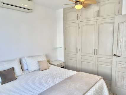 Junto al pasillo hay un práctico trastero o despensa con estanterías, que también podría convertirse en una pequeña oficina. El dormitorio principal cuenta con armarios empotrados dobles, aire acondicionado frío-calor y ventilador de techo. El segundo dormitorio tiene armarios empotrados tradicionales. Entre los dormitorios se encuentra el baño familiar, que cuenta con una amplia ducha de efecto lluvia, un mueble de lavabo con armario con espejo, bidé e inodoro.
