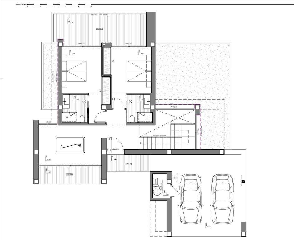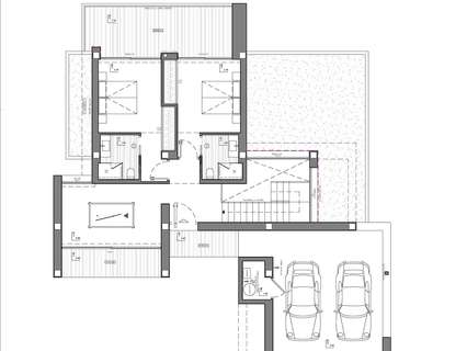 La villa dispone de una zona de aparcamiento privado en la planta superior para un máximo de dos vehículos, ya que el acceso a la villa se encuentra en la misma planta.