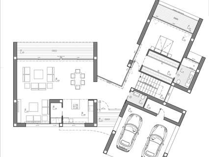 La zona de estar se encuentra en la misma planta. Una espaciosa cocina con isla central y equipada con electrodomésticos de primeras marcas, un gran salón y terraza con unas impresionantes vistas al mar Mediterráneo.