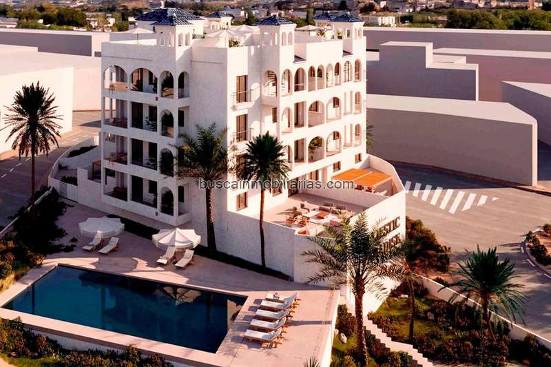 Los apartamentos se entregan totalmente equipados, incluyendo muebles, cocina blanca de alta gama de suelo a techo con electrodomésticos, aire acondicionado, iluminación interior, persianas eléctricas, intercomunicador, armarios empotrados con puertas correderas y baños completamente amueblados con espejos, mamparas de ducha y grifería. Cada vivienda incluye además plaza de aparcamiento subterráneo y trastero, y el edificio contará con ascensor.