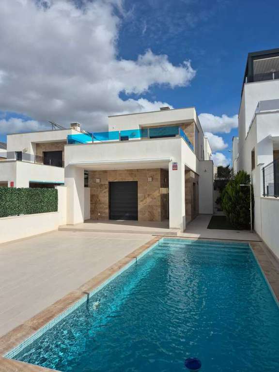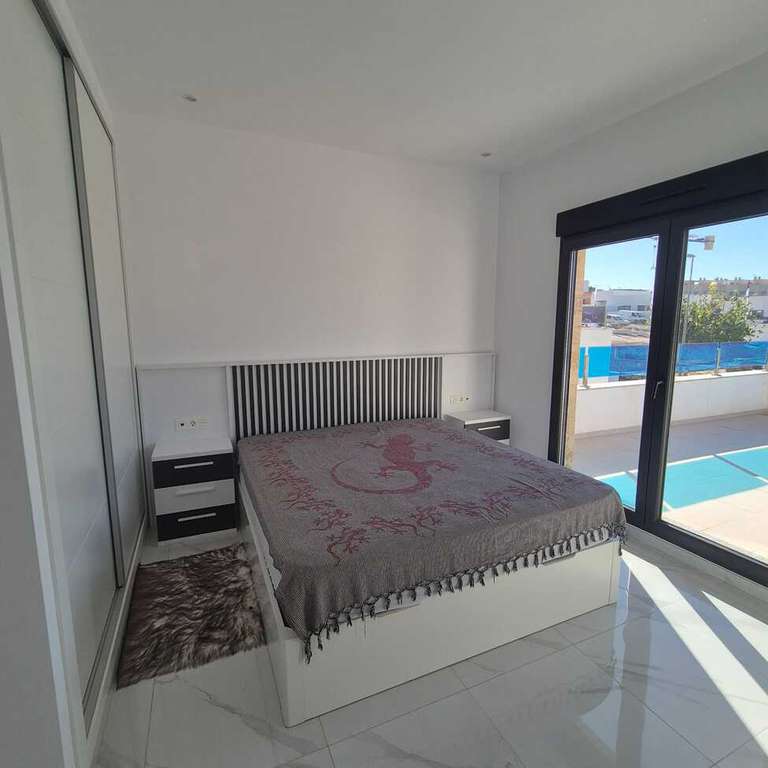 Presentamos este espectacular chalet independiente en una de las zonas residenciales más prometedoras de Bigastro (Alicante).Esta vivienda combina a la perfección diseño contemporáneo, eficiencia energética y tranquilidad natural, a tan solo 25 minutos de las playas del Mediterráneo y con excelente acceso a servicios y carreteras principales.Moderna, con 3 dormitorios y 3 baños, ubicada en el pintoresco pueblo de Bigastro, con impresionantes vistas a la montaña y a tan solo 25 minutos en coche de la hermosa costa mediterránea. Perfecta como primera o segunda residencia, esta casa está equipada con todo lo necesario para disfrutar del máximo confort en un entorno privilegiado. Construida en 2023, esta vivienda contemporánea combina a la perfección diseño vanguardista, comodidad para el día a día y una eficiencia energética excepcional. Con una generosa superficie habitable de 144 m², la villa cuenta con tres espaciosas habitaciones dobles y dos elegantes baños en suite totalmente equipados.En el corazón de la vivienda se encuentra una elegante cocina americana, equipada con electrodomésticos, conectada a la perfección con el amplio y luminoso salón, perfecto tanto para el entretenimiento como para el relax.Con un dormitorio y un baño completo en la planta baja, esta podría ser la casa de sus sueños.Disfrute de su piscina privada. El jardín, de fácil mantenimiento, tiene una superficie de 246 m² y una piscina de 7,5 m x 3 m.Calefacción solar para agua caliente.Seguridad:Todas las ventanas principales cuentan con persianas eléctricas de seguridad.Cocina: Hecha a medida con electrodomésticos.Ubicada en un entorno tranquilo y verde, rodeada de huertos y pintorescos senderos, la villa ofrece un estilo de vida sereno sin sacrificar la comodidad. Todos los servicios esenciales están a un corto trayecto en coche. Bigastro se está consolidando como una ciudad en auge con mucho que ofrecer, con nuevos parques para niños y una gran variedad de actividades para adultos, además de numerosas actividades recreativas, como Vistabella Golf y La Finca a solo 15 minutos, pistas de pádel interiores y exteriores para los amantes del deporte, y muchas más instalaciones deportivas y de fitness.La casa se encuentra en una zona con magníficas vistas a la Sierra de la Vega Baja, con todos los servicios a su alcance en Bigastro y Orihuela, y a solo 25 minutos de las playas de Orihuela Costa y Torrevieja en la Costa Blanca. Orihuela está a menos de 10 minutos y, con el tren de alta velocidad, Madrid está a solo 2,5 horas. El aeropuerto de Alicante está a solo 40 minutos en coche.