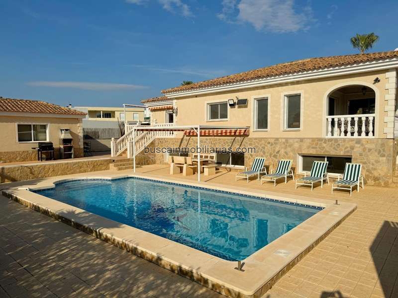 En el exterior, la parcela está completamente vallada, ofreciendo un entorno seguro y privado. La piscina privada, rodeada de una amplia terraza, invita al relax bajo el sol, con zonas chillout, rincones de sombra y espacios pensados para el descanso y la desconexión. Una zona de barbacoa complementa esta propuesta, ideal para organizar comidas al aire libre, celebraciones familiares o veladas con amigos.