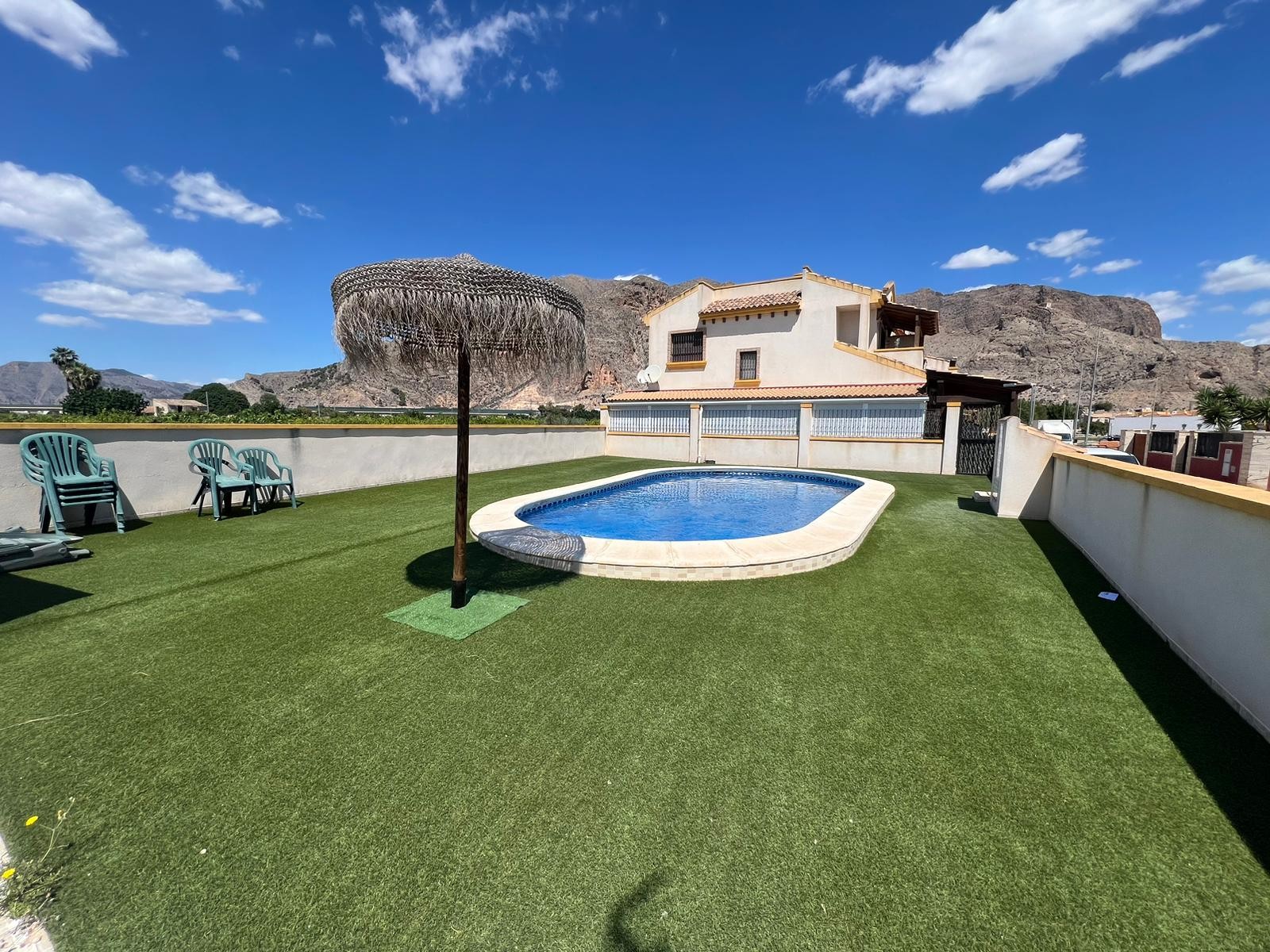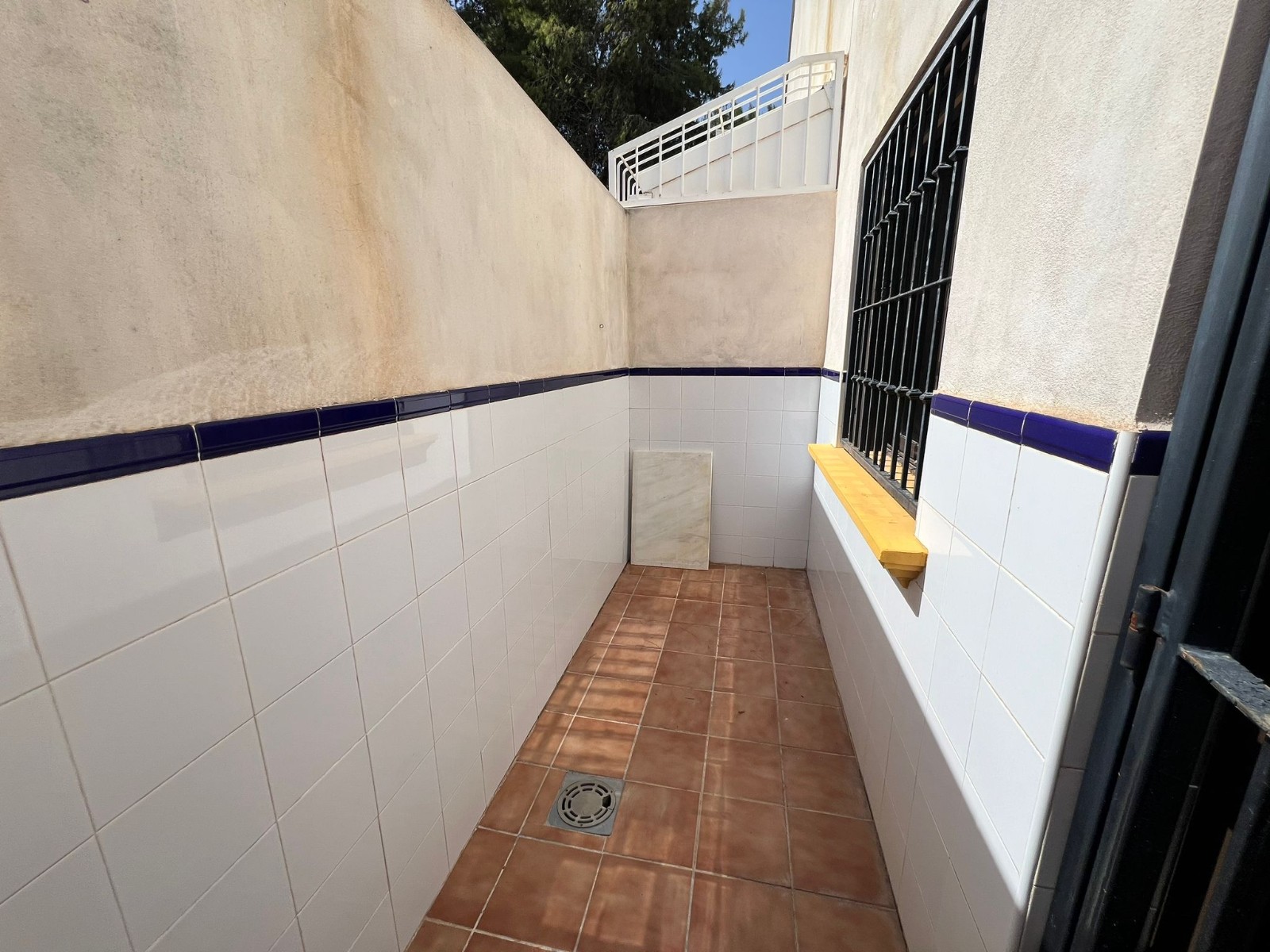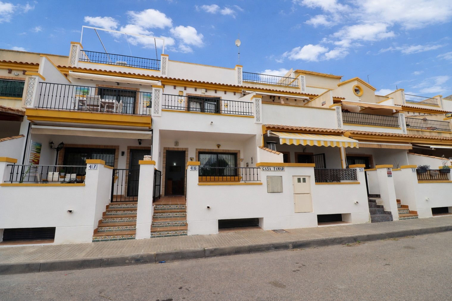 Esta espaciosa casa adosada de tres habitaciones en Callosa del Segura está ubicada en una zona residencial a solo un par de minutos en automóvil de la ciudad, donde tiene todas las instalaciones que pueda necesitar, incluida la estación de tren. El Hospital Vega Baja se encuentra aproximadamente a 10 minutos en coche ya menos de 15 minutos a Orihuela o almoradí. Hay dos campos de golf en La Finca Golf y Vistabella Golf aproximadamente 20 minutos y la playa 30 minutos. La propiedad de 141m2 se beneficia del uso de una piscina comunitaria, tiene un garaje subterráneo y consta de: sala de estar con escaleras que conducen al primer piso, unidad de aire acondicionado; cocina independiente equipada con puerta que da a la parte trasera; habitación doble; ducha. Hay otros dos dormitorios dobles en el primer piso, el principal con terraza; baño familiar. Las escaleras internas conducen al solárium privado donde puede disfrutar de vistas abiertas a las montañas. El jardín está embaldosado por lo que es de fácil manejo. Los extras incluyen ventiladores de techo y armarios empotrados en los dos dormitorios del primer piso.