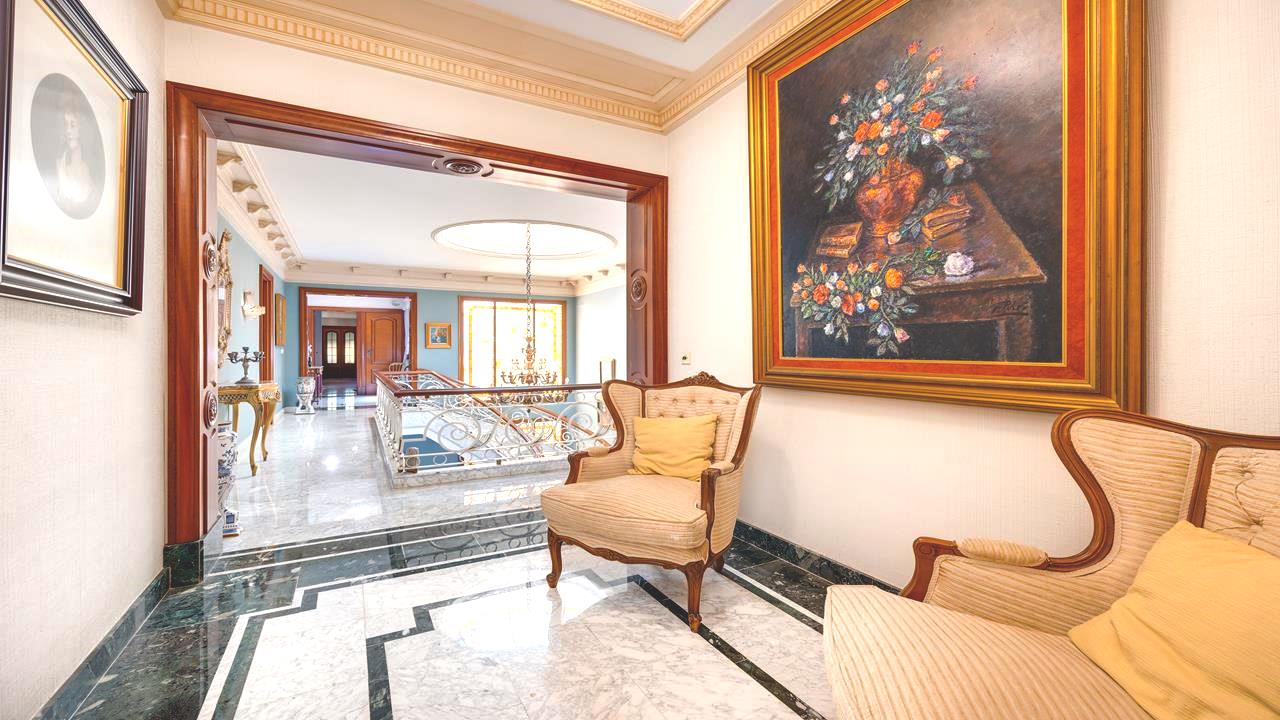 El espacio interior ha sido cuidadosamente amueblado con un estilo clásico y funcional, con chimenea, calefacción, aire acondicionado y un completo sistema de alarma que garantiza seguridad y confort. La mansión cuenta con un ascensor privado que conecta todas las plantas, incluyendo sótanos acondicionados, ideales para bodega, gimnasio o salas de recreo. También cuenta con un trastero y útiles zonas auxiliares.
