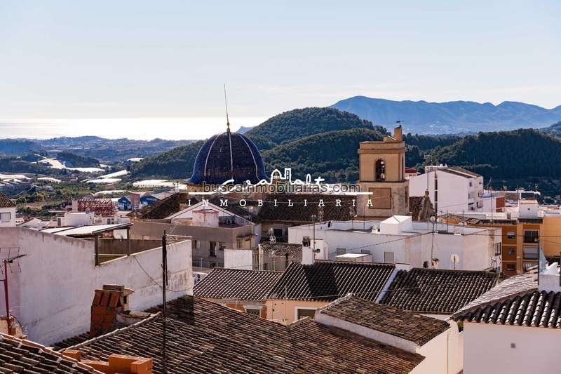 Gran casa de pueblo con diversos accesos a la parcela donde disfrutar del buen clima mediterráneo, los rayos del sol y las vistas a las montañas.