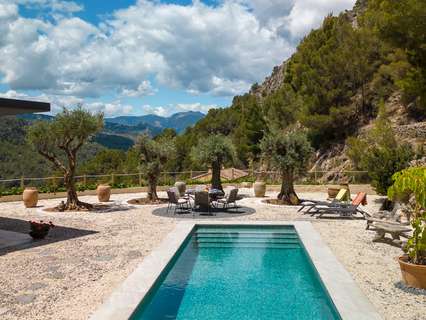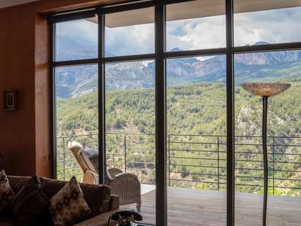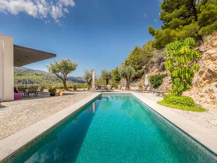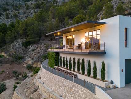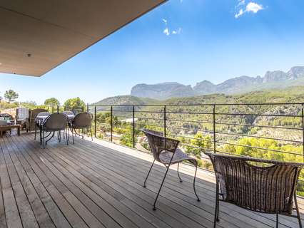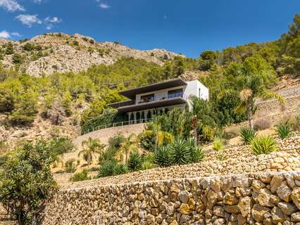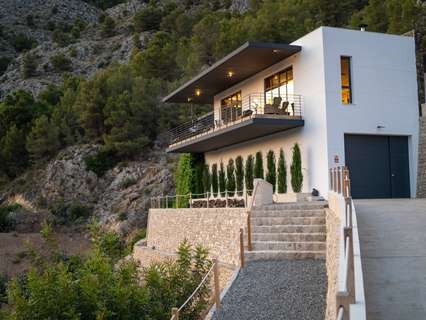 Chalet excepcional en venta en el entorno natural protegido del Valle de Guadalest, un enclave único que regala impresionantes panorámicas a las montañas y al bosque. Aunque administrativamente pertenece a Callosa, en el límite con Guadalest, su silueta destaca en el pintoresco valle. No es un detalle menor, sino un matiz que realza su grandeza. Como bien afirma su propietario: “Quien busca una casa como esta, busca superlativos, no alternativas”.La propiedad se alza sobre una parcela de 13.319 m² cuidadosamente diseñada para un mantenimiento sencillo, con muros de piedra, iluminación ambiental, zonas ajardinadas, árboles frutales y espacios pavimentados. El acceso es directo desde la carretera principal que conecta Callosa con Guadalest, a la entrada del pueblo, mediante una puerta automática compartida con un único vecino. Se trata de una vía tranquila, utilizada casi en exclusiva por residentes, ciclistas o amantes de la conducción panorámica.En el nivel inferior encontramos un amplio garaje de 220 m² con techos de 3,9 m de altura, donde están instalados el sistema de filtrado de aguas residuales y el moderno equipamiento solar con baterías. Hay capacidad para 4 a 6 vehículos y, además, el espacio ofrece múltiples posibilidades: podría transformarse en un apartamento independiente con 1 a 3 dormitorios adicionales, baños y cocina, ya que todas las preinstalaciones están preparadas. La pared suroeste está lista para abrir grandes ventanales y convertirlo en un nivel habitable con vistas espectaculares, incluso con la opción de instalar escalera o ascensor que comunique directamente con la planta principal.La planta principal, con una superficie de 220 m², alberga 3 dormitorios y 2 baños. Destacan las terrazas perimetrales, especialmente la terraza frontal de 3,3 m de vuelo, una auténtica obra de ingeniería desde donde se contemplan montañas infinitas en una paleta de verdes, hasta alcanzar el icónico pueblo de Guadalest. Un escenario que sorprende de día y embruja de noche, en un entorno de silencio absoluto, ideal para quienes buscan desconexión total sin renunciar a la cercanía de los servicios cotidianos.La orientación suroeste, protegida por la montaña a sus espaldas, asegura un microclima estable y libre de los fuertes vientos que suelen afectar a otras viviendas en altura.En la parcela, rodeada de privacidad absoluta, se encuentra una piscina de agua salada de 30 m², equipada con cubierta y sistema electrolítico de calefacción, lo que permite disfrutar de agua templada durante gran parte del año. Junto a ella, una cocina exterior cubierta, lavadero y ducha al aire libre. En la parte trasera hay espacio para más de 10 vehículos, además de diferentes rincones, sombreados o soleados, que invitan a relajarse y disfrutar de las vistas únicas del valle.En definitiva, esta propiedad no solo es una vivienda: es un refugio exclusivo en plena naturaleza, pensado para quienes buscan lo extraordinario.