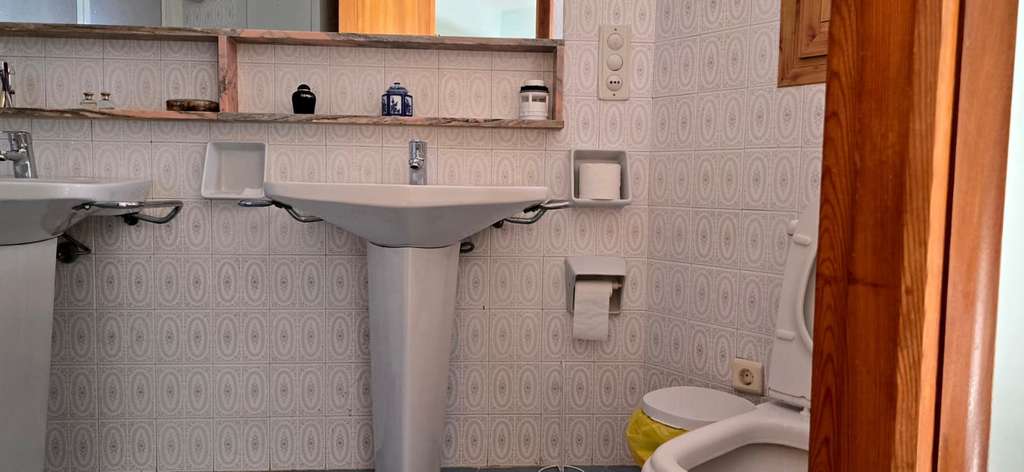 En la planta principal hay cuatro dormitorios, todos con baño propio, un salón amplio y acogedor y una cocina independiente equipada. La planta de abajo (semisótano) cuenta con tres dormitorios más, una segunda cocina, otro salón y garaje con capacidad para dos coches.
