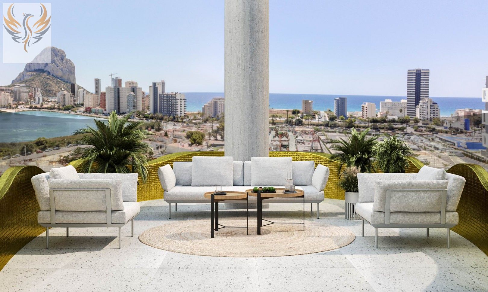 Cada vivienda cuenta con una gran terraza, una mirada circular a todo lo mejor de Calpe: la playa del Arenal, la playa de la Fossa, la laguna de Las Salinas, y por supuesto el Peñón de Ifach.