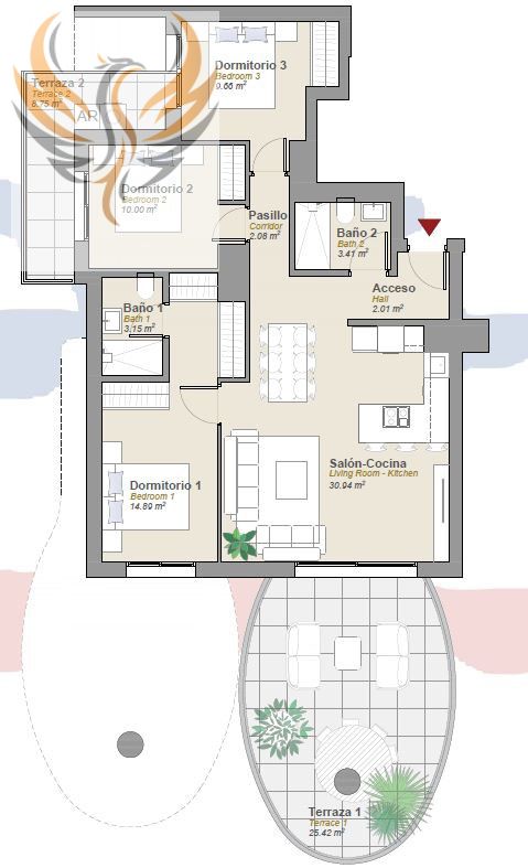 Planta 14. Apartamento 14B con 3 Dormitorios. Sup. Construida 116,59 m2. Sup. Const. Terraza 28,42 m2. Total Sup. Construida + Terraza 145,01 m2. Parking y Trastero Incl. Precio: 670.000 €