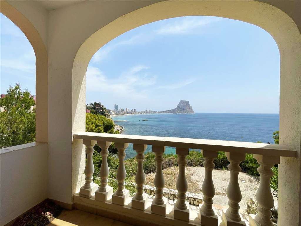 Se vende adosado de 3 dormitorios en 1ª linea de mar en Calpe, Costa Blanca, con piscina comunitaria y excelentes vistas de casi 180º al mar, a solo 30 m de la Cala Manzanera.