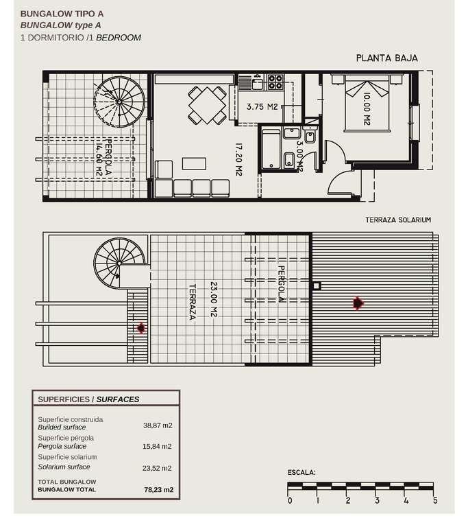 Preciosos bungalows en planta alta con 1 dormitorio, 1 baño, cocina americana con salón, armarios empotrados y terrazas.
