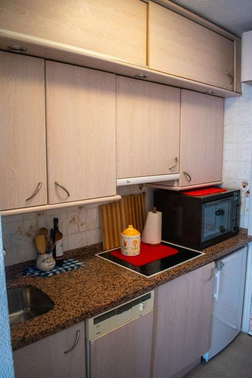 La propiedad está en buen estado y se vende completamente amueblada, lista para entrar a vivir. El edificio dispone de ascensor y acceso mediante escalera, en una zona tranquila de Calpe. Además, el complejo residencial ofrece una gran piscina comunitaria, pista de tenis y acceso inmediato al paseo marítimo y a la playa del Arenal.