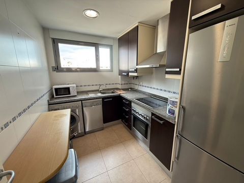Dispone de amplio salón con salida a una terraza grande con vistas al mar, cocina totalmente equipada, 2 dormitorios con armarios empotrados y 2 baños, uno de ellos en suite. El apartamento tiene aire acondicionado frío/calor, ventanas de doble acristalamiento.