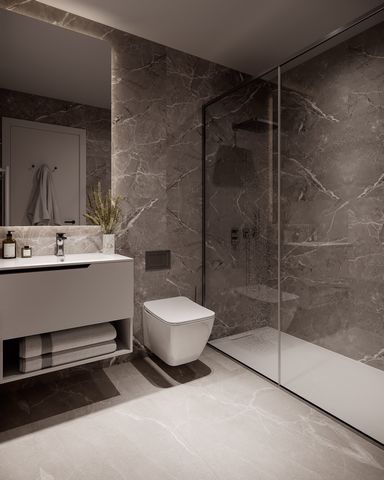 In the heart of Calpe (Alicante), one of the most sought-after locations on the Costa Blanca, a stylish new residential project is rising that elevates modern Mediterranean living to a new level. This exclusive residence combines contemporary architecture with a prime location just minutes from the beach. The project features elegant apartments with 2 and 3 bedrooms and 2 bathrooms, designed with attention to comfort, light, and functionality. The spacious living rooms with open kitchens connect directly to generous terraces of up to 31 m², where you can enjoy outdoor living under the Spanish sun. Some apartments also offer beautiful sea views—a perfect setting for relaxation and stylish al fresco dining. All apartments are equipped with high-quality finishes, fully fitted kitchens, built-in wardrobes, air conditioning, an aerothermal heating system, a storage room, and a private parking space. Large windows provide a bright and modern atmosphere in every room. Residents have access to beautifully landscaped communal areas with green gardens, sports fields, and a fitness room—ideal for those who wish to combine tranquility with an active lifestyle. The location is unrivaled: just 5 minutes from Calpe’s beaches and 50 meters from supermarkets such as Lidl and Rossmann. In the immediate vicinity, you will find restaurants, shops, sports facilities, and medical services. An excellent investment on the Costa Blanca or your own sunny home in Calpe. Request more information or a viewing today!