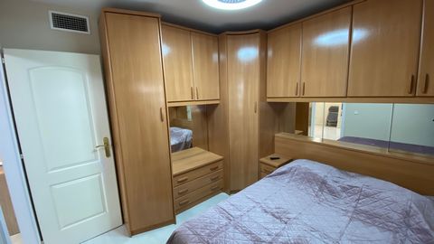 Apartamento con vistas al mar, en la primera linea de la playa Levante en Calpe. Es un apartamento muy soleado, completamente amueblado y equipado, tiene un salón comedor con cocina americana y acceso a una amplia terraza, un dormitorio y un baño.