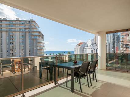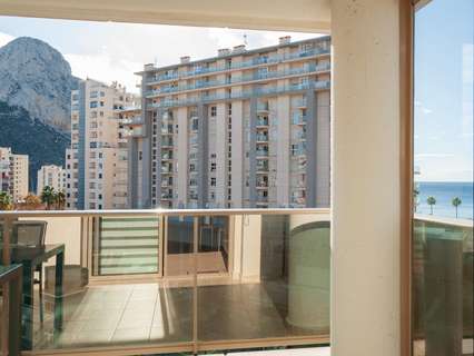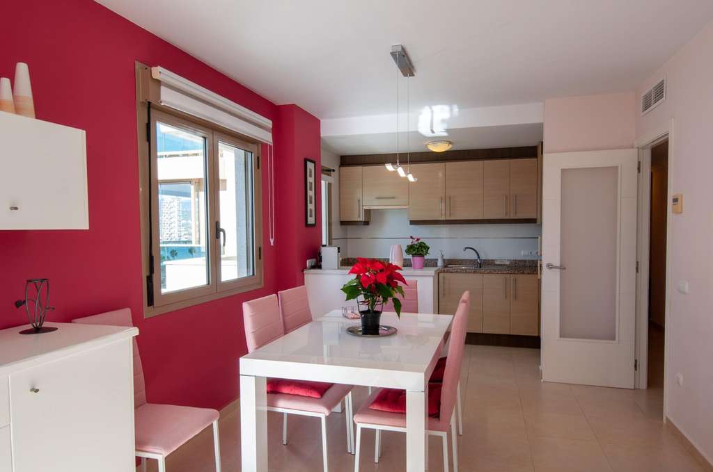 Descubre este soleado apartamento en esquina con impresionantes vistas al mar, al Peñón de Ifach y a las salinas. Gracias a su orientación ideal, disfruta del sol durante todo el día.~La amplia terraza y la cocina abierta con el salón ofrecen vistas directas al mar. Además, hay un pequeño balcón junto a la cocina con vistas tanto a las salinas como al mar.~El apartamento cuenta con dos dormitorios, uno de ellos con baño en suite y vistas al mar. En total, hay dos baños: el en suite con ducha y un baño independiente con bañera.~Se vende amueblado, ideal para quienes quieran mudarse de inmediato. El apartamento está en buen estado y dispone de aire acondicionado central, plaza de garaje subterránea y acceso a piscina comunitaria.~Ubicado a pocos minutos a pie de la playa y de todos los servicios — ¡una oportunidad que no querrás dejar pasar!