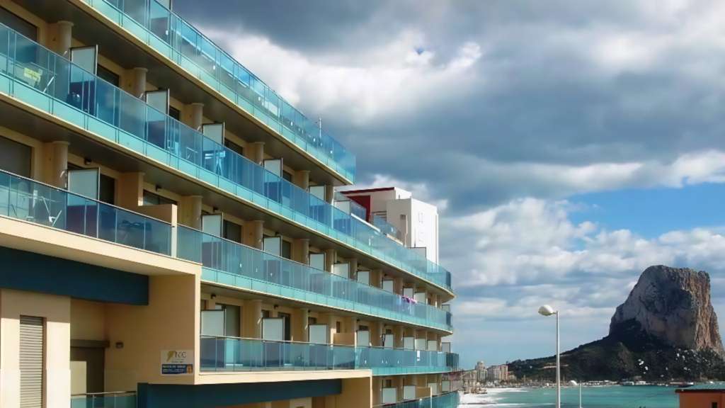 La vivienda cuenta con dos amplios dormitorios dobles y dos baños completos, uno de ellos en suite con ducha y el otro con bañera, proporcionando privacidad y comodidad. El salón-comedor es espacioso y luminoso, con acceso a una terraza que regala vistas laterales al mar y al emblemático Peñón de Ifach.