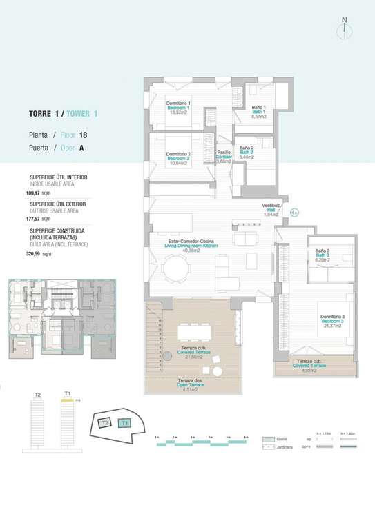 Amplias zonas comunes con jardines, piscina, pádel, zona infantil. En la planta 11 de la torre 1: piscina infinita, sauna, gimnasio y zona chill out con vistas al mar.