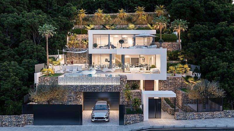 Descubra lo máximo del lujo costero con esta excepcional villa en construcción en la pintoresca Calpe. Con impresionantes vistas panorámicas al mar Mediterráneo, al emblemático Peñón de Ifach y a la bahía de Calpe, esta residencia combina a la perfección una arquitectura innovadora con materiales de primera calidad.