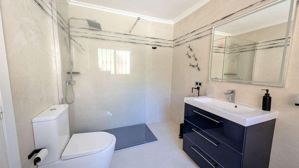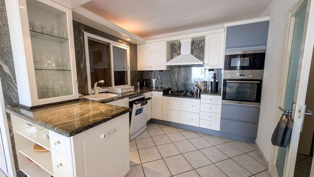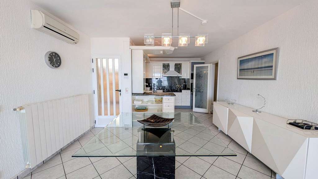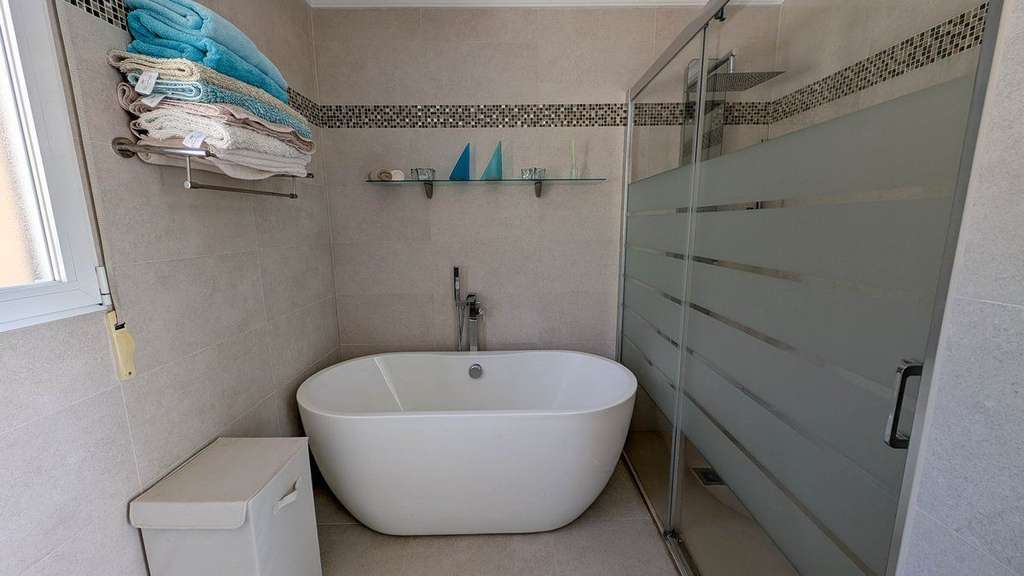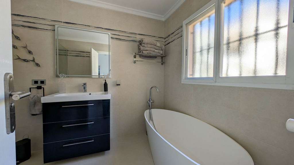 La propiedad está situada a escasos 750 m de las playas de arena y del mar Mediterráneo, con todos los servicios al alcance: tiendas, restaurantes, bancos y demás comodidades que garantizan una vida práctica y confortable. Además, la villa ofrece impresionantes vistas al mar desde ambos niveles, lo que la convierte en una opción ideal tanto como residencia permanente como para obtener una excelente rentabilidad en alquiler.