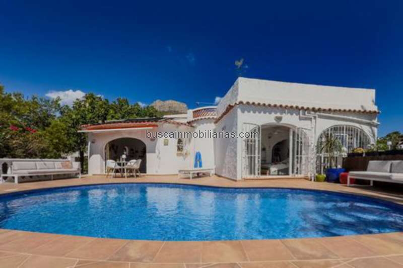 Ésta villa consta de un salón-comedor con chimenea y estufa de leña, desde el que podemos apreciar unas bonitas vistas a la piscina, vistas al mar y al Peñón de Ifach.