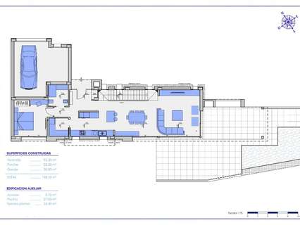 Villa moderna para construir en Carrio, cerca de la playa en Calpe. Situado en una urbanización tranquila. Lo más importante es que la ubicación es perfecta, a 20 minutos a pie de la playa de La Fustera o de la playa de Bassetes. A 10 minutos en coche de Calpe. El plano de planta consta de cuatro amplios dormitorios, cuatro baños, cocina abierta y moderna con isla y trastero independiente que desemboca en el comedor y la terraza. Además, en el exterior podrás disfrutar de la vida mediterránea con una terraza de 55m2 y una piscina de 27m2.Perfecta para una familia o como retiro vacacional. Esta moderna villa en Calpe tiene una ubicación ideal para disfrutar de la proximidad a playas, cafeterías y restaurantes. La parcela también se puede vender sin proyecto por 380.000€. ¡Podemos crear y construir la casa de tus sueños! Calefacción central, aire acondicionado central, garaje y mucho más.