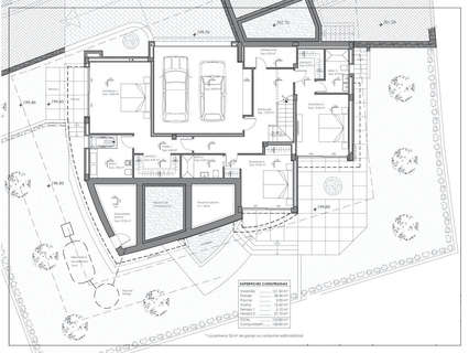 El nivel inferior alberga un garaje para dos coches con acceso directo a la vivienda. Aquí se sitúa el dormitorio principal, que cuenta con un área de vestidor en forma de U, armarios empotrados, un amplio baño en suite y un patio privado. Otro dormitorio con baño en suite ofrece acceso a la terraza, complementándose con un tercer dormitorio también con acceso a la terraza, armarios empotrados, un baño familiar adicional.