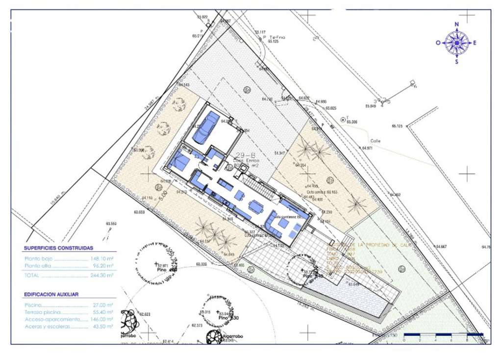 Villa moderna para construir en Carrio, cerca de la playa de Calpe. Ubicada en una urbanización tranquila. Lo más importante es que la ubicación es perfecta, a 20 minutos a pie de la playa de La Fustera o de la playa de Bassetes. A 10 minutos en coche de Calpe. La distribución de la vivienda consta de cuatro amplios dormitorios, cuatro baños, cocina moderna abierta con isla y trastero independiente que comunica con el comedor y la terraza. Además, en el exterior se puede disfrutar de la vida mediterránea con una terraza de 55m2 y una piscina de 27m2. Perfecta para una familia o como refugio de vacaciones. Esta villa moderna en Calpe tiene una ubicación ideal para disfrutar de la proximidad a playas, cafeterías y restaurantes. La parcela también se puede vender sin el proyecto por 380.000€. ¡Podemos crear y construir la casa de sus sueños! Calefacción central, aire acondicionado central, garaje y mucho más. Para más información no dude en ponerse en contacto con nosotros.