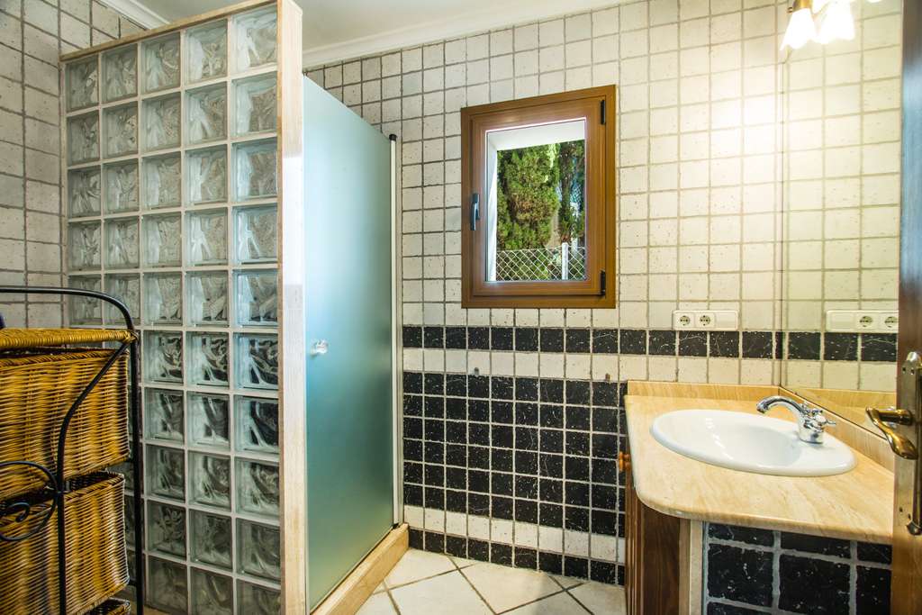 INTERIOR: Planta baja: Amplio salón con mesa de billar. un amplio dormitorio con dos camas individuales, ventilador de techo, y cuarto de baño con plato de ducha, wc y lavabo en suite. un amplio dormitorio con cama de matrimonio, cuarto de baño con ducha, wc y lavabo en suite un dormitorio con dos camas individuales. un cuarto de baño, con plato ducha, wc y lavabo.