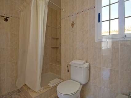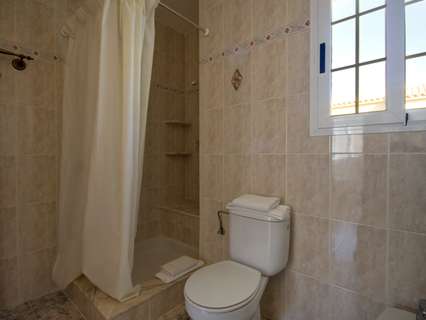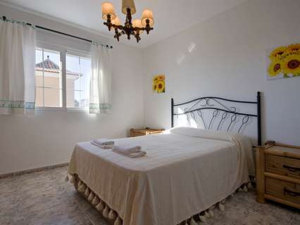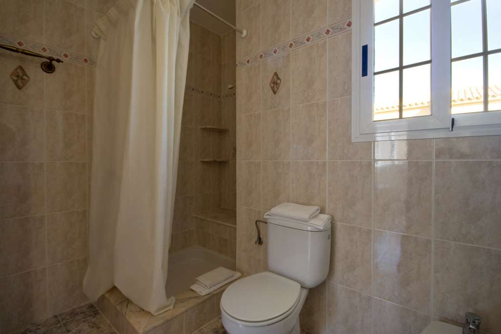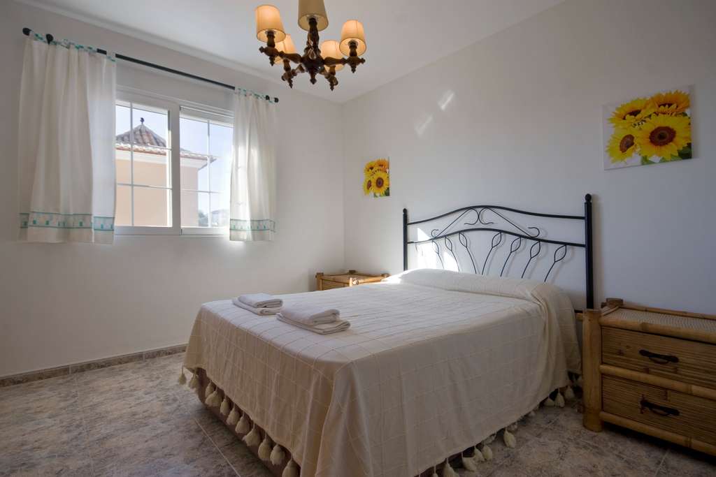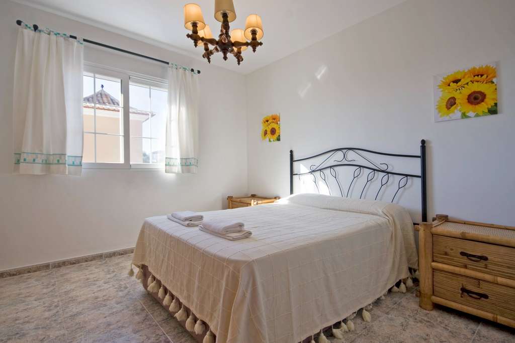 INTERIOR: Esta bonita villa consta de la PLANTA BAJA en la cual encontraremos un hall de entrada, un amplio salón-comedor y acceso a la terraza cubierta, ideal para tomar desayunos. Cocina totalmente equipada con cocina de gas, lavavajillas y acceso también acceso a la terraza. Dos dormitorios con una cama de matrimonio cada uno, uno de ellos con ventilador de techo y acceso al balcón. Un dormitorio con dos camas individuales. Dos cuartos de baño con ducha cada uno. En la PLANTA ALTA a la cual accederemos por escaleras interiores, encontraremos un salón y acceso al solárium. Una cocina con cocina de gas. Un amplio dormitorio con una cama de matrimonio. Un cuarto de baño con plato de ducha y por último, un amplio dormitorio con dos camas individuales.