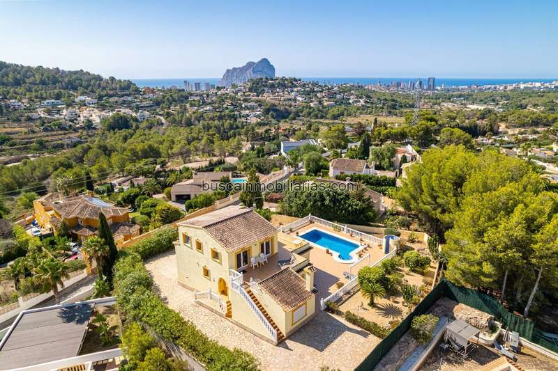 La vivienda principal, situada en la planta baja, se accede a través de una soleada naya acristalada al luminoso y espacioso salón en forma de L, con chimenea de leña y calefacción central de gas. A la planta baja se accede por una soleada naya acristalada y se accede al luminoso y espacioso salón en forma de L, con chimenea de leña y calefacción central de gas. A la planta baja se accede por una cocina independiente contigua, totalmente equipada, 2 amplios dormitorios, uno con un amplio baño en suite y ducha, y otro baño familiar independiente. Dispone de toldos y aire acondicionado, además de un amplio garaje con trastero independiente. Piscina de 8x4 m con delfín y escalera romana. Amplia terraza soleada rodeada de jardines mediterráneos muy maduros. Totalmente amurallada para mayor privacidad, con puerta de entrada automática y amplio espacio de aparcamiento. Se vende completamente amueblado. ¡VISITA ABSOLUTAMENTE OBLIGADA!