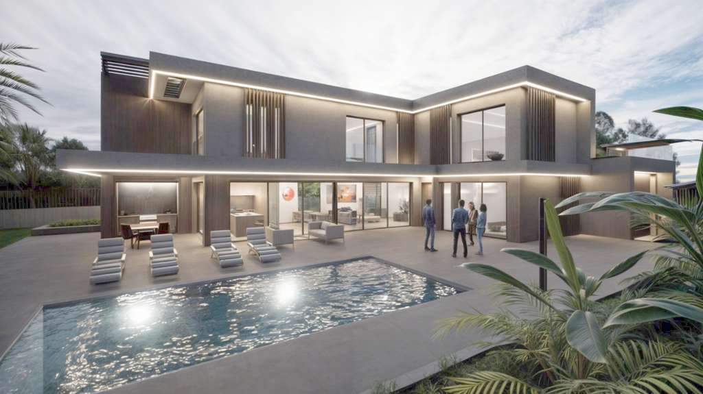 Dos plantas con cuatro dormitorios y cuatro bañosCocina abierta con isla de trabajoLavadero para almacenamiento y lavanderíaPiscina de 32 m² con terraza soláriumGaraje para dos cochesCalefacción por suelo radiante y aire acondicionadoPor qué visitar esta villa