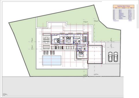 En el exterior hay una amplia terraza cubierta, una terraza solárium alrededor de la piscina y un aseo exterior adicional. La villa también cuenta con un garaje para dos coches. La villa está equipada con calefacción por suelo radiante, aire acondicionado y doble acristalamiento.