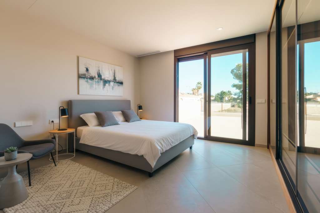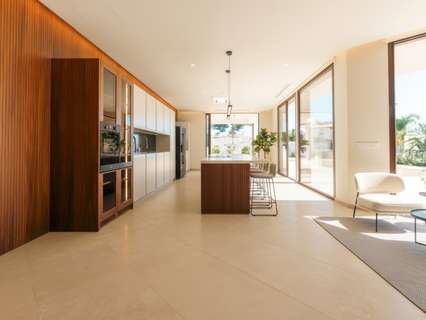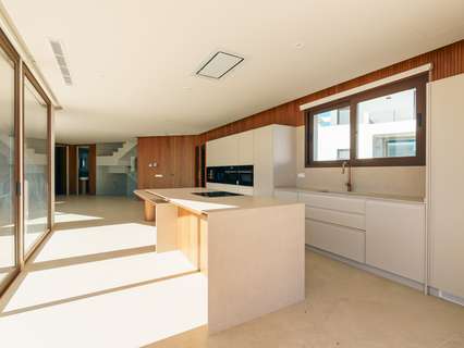 Interiores con diseño contemporáneo, suelos de gran formato y amplios ventanales. Cocina moderna abierta al salón, funcional y elegante.