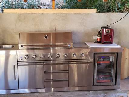 EQUIPAMIENTO: Calefacción central de gas, aire acondicionado frio/calor, chimenea, sistema de aspiración centralizado, mosquiteras en ventanas, amplia terraza de 65 m2 alrededor de la piscina de 8 x 4 m. Jardín mediterráneo que requiere poco mantenimiento, aparcamiento cubierto para 2 coches. Puerta automática. Mucha privacidad.
